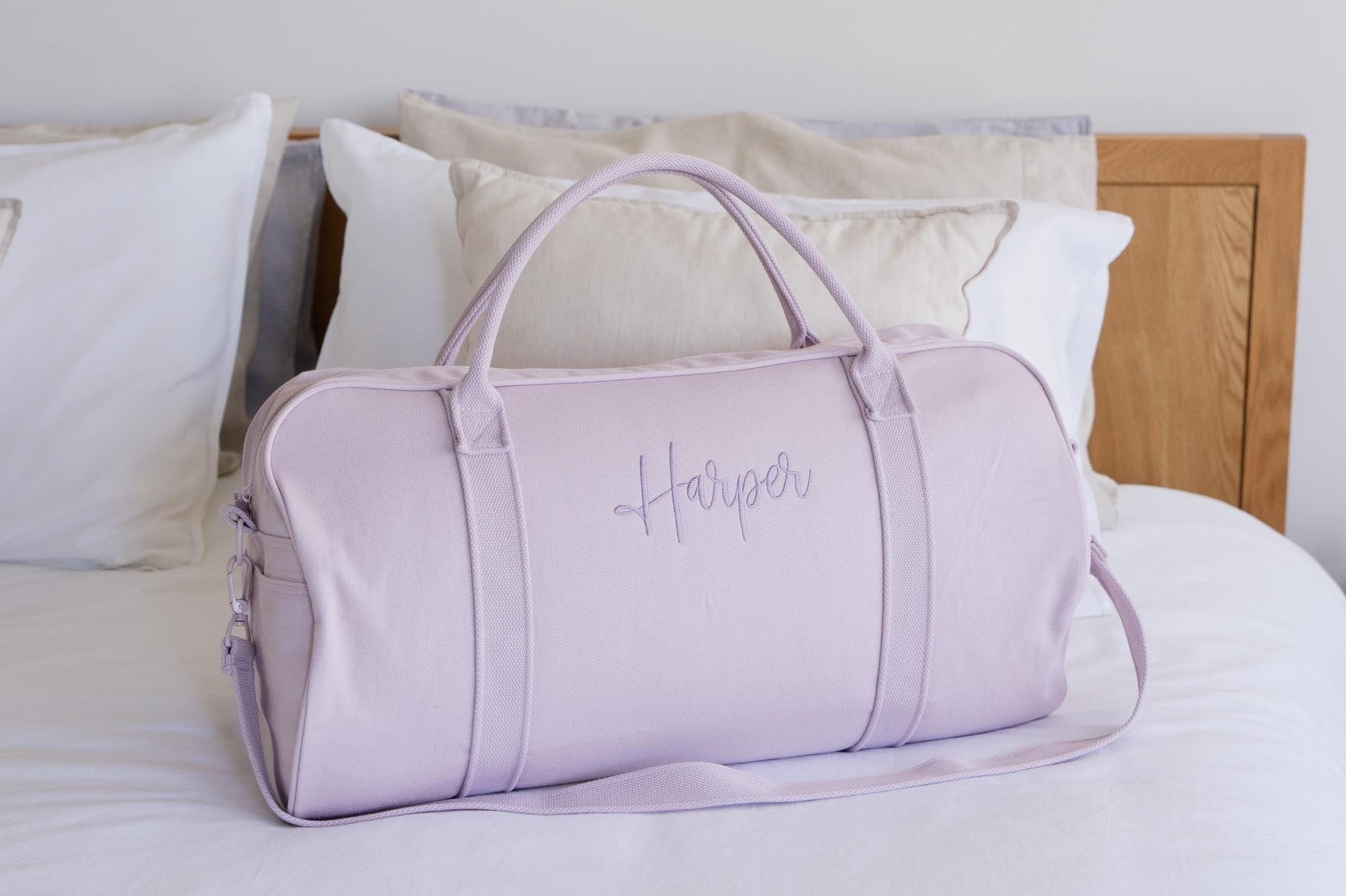 Make packing for sleepovers a breeze with our personalised unique duffle bag. Crafted from sturdy cotton canvas and featuring matching hardware and zippers, it can carry everything you need for your next adventure. Plus, its additional shoulder strap lets you carry your keepsakes with comfort and style.