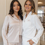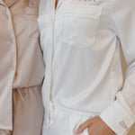 Celebrate your unique forever love with our Zoe PJ set, available in 5 charming colours. Add personalisation to commemorate your special day or new last name. Mix and match with the Lucia and Sienna sleep sets to honour the individuality of your entire bridal party. Crafted from our new premium satin quality, developed by us for you.