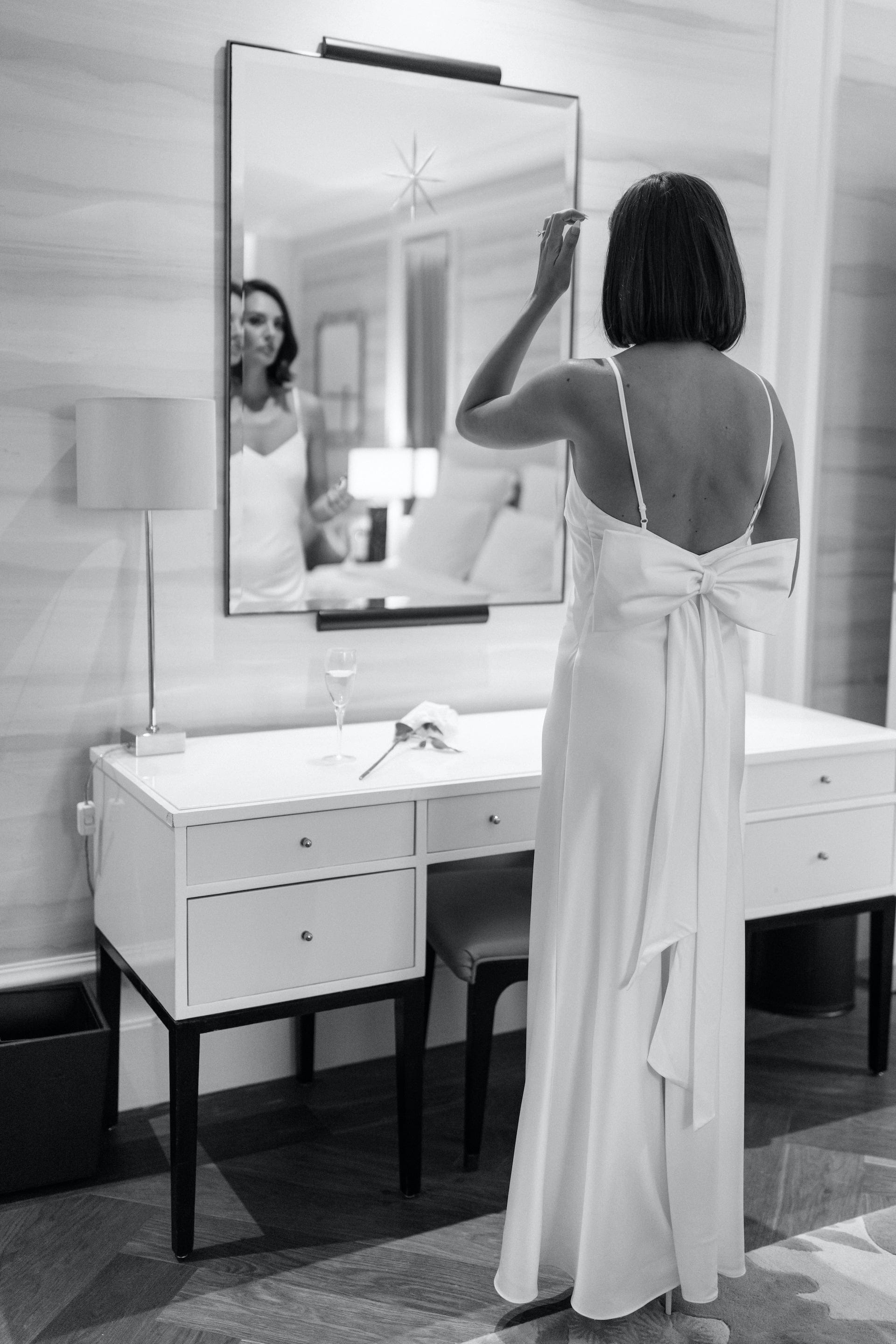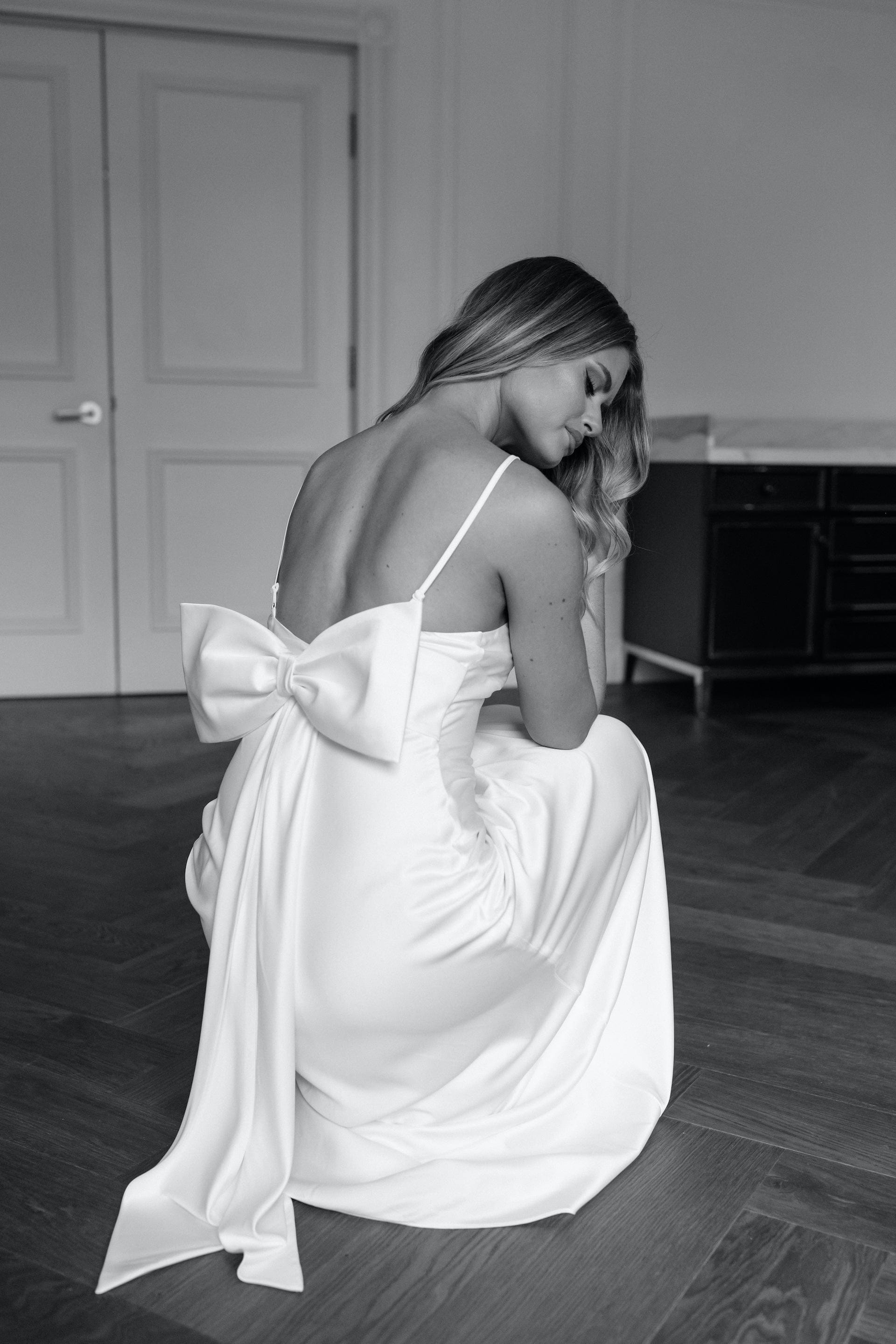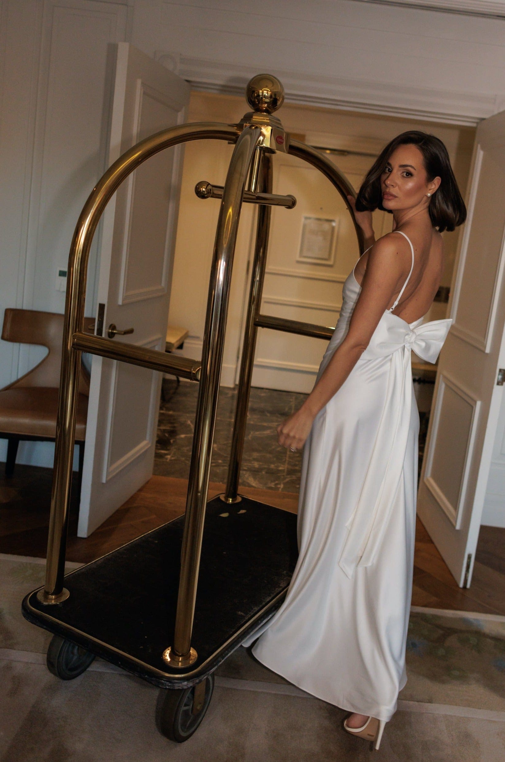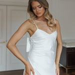 Make an unforgettable statement with our stunning Bijou Bow Maxi Bridal Slip, featuring an exaggerated detachable bow and crafted from our signature luxurious double lined satin. You will be the bride of the season! This floor length slip also boasts adjustable straps for ease of removing. Prepare to leave a lasting impression with this must-have piece.