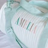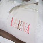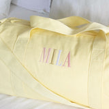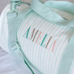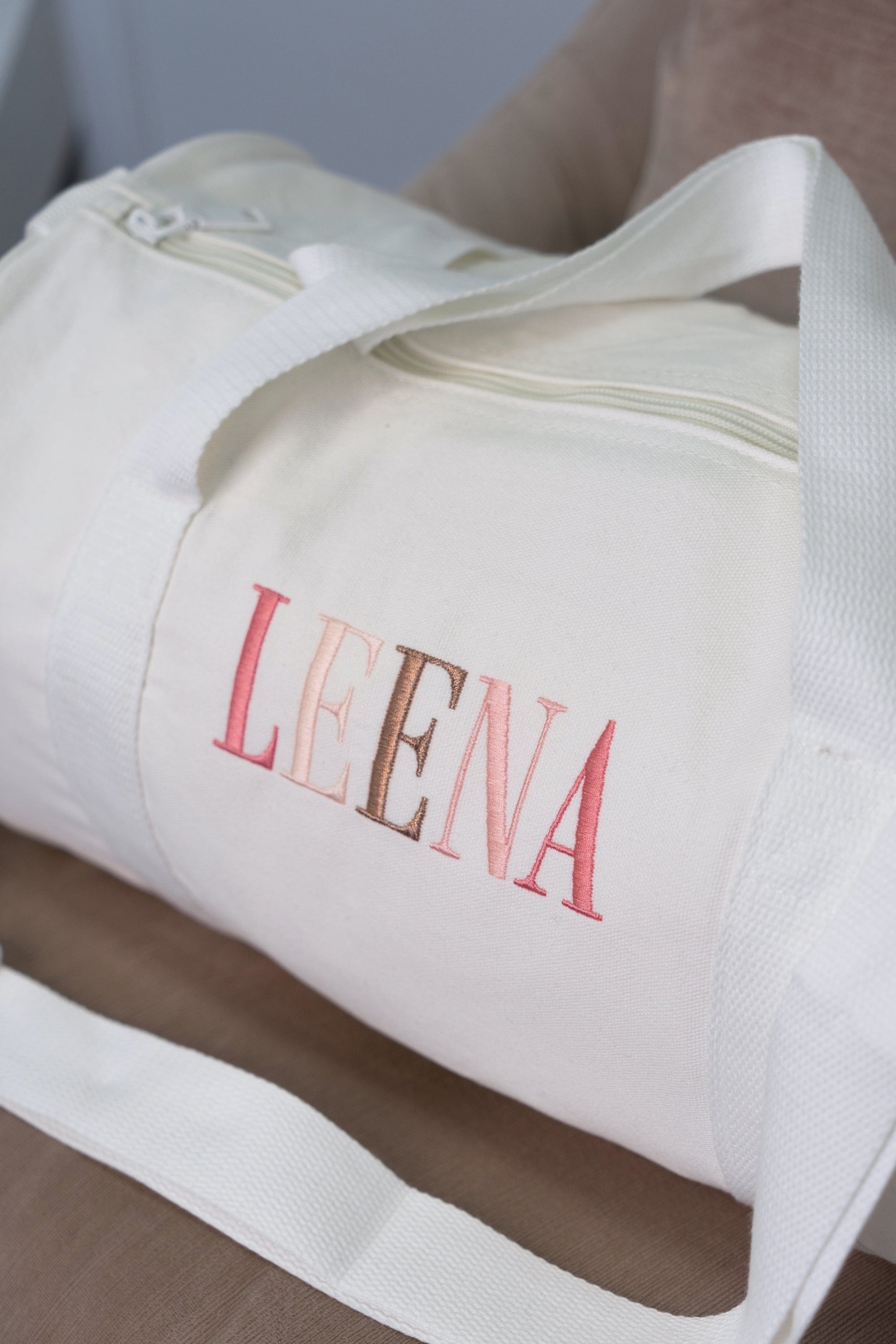 The embroidery colours and font of each name are set as per the images above. These can not be altered and are designed to match back to the bag colour. The sequence of each letter colour will continue for names with more characters than those shown.