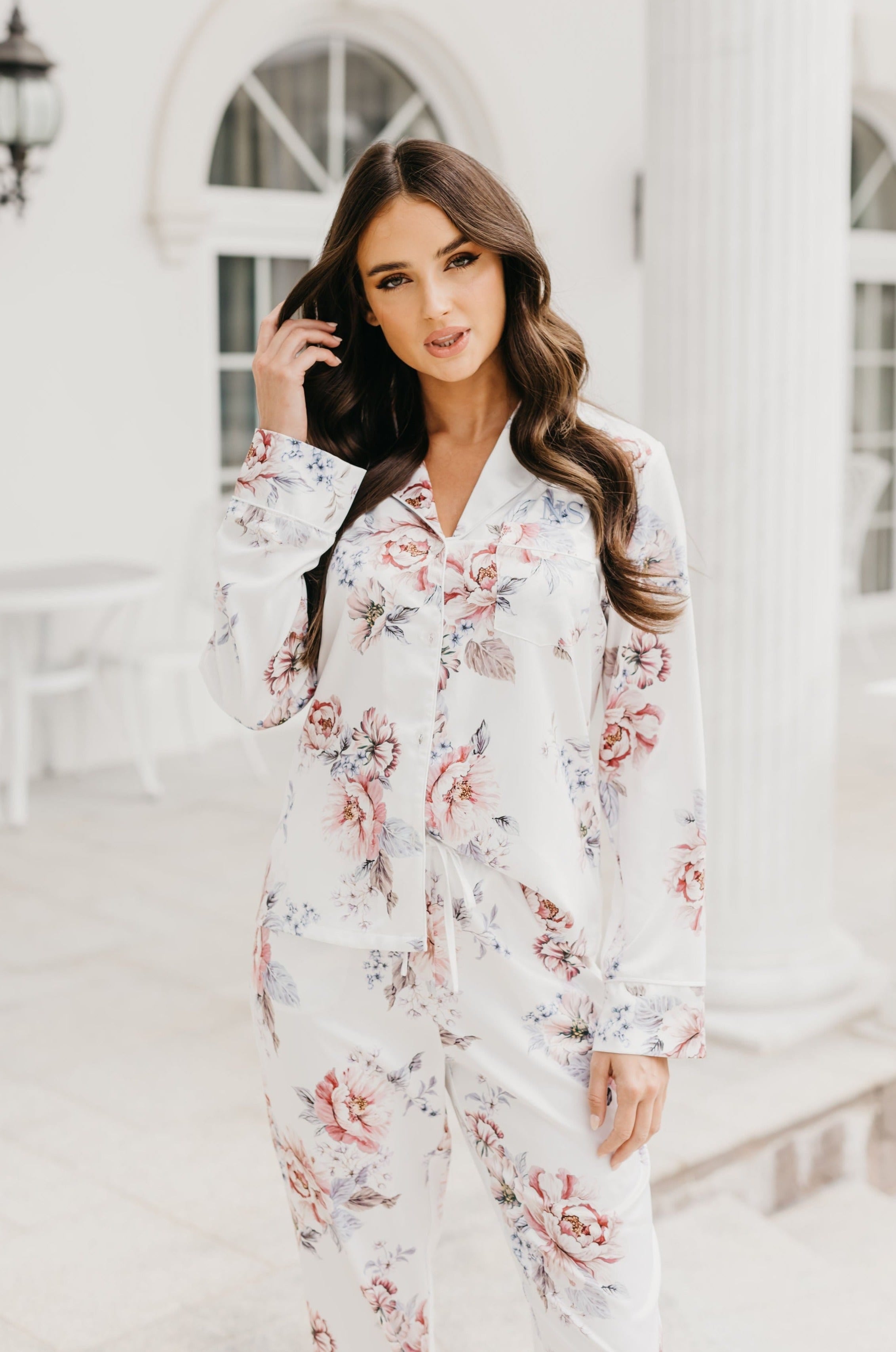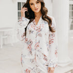 Try as you may to hide it... the world knows a woman in love. Let yourself bloom in Christina Veiled Rose printed long/long PJ set featuring an exclusive floral print designed in house at LeRose HQ. Available in 3 delightful colours, It's the time of the season for loving...