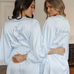 Bridal robes and sleepwear are packed in soft white satin gift bags with ribbon and a gift card, then delivered in postal sachets.