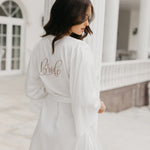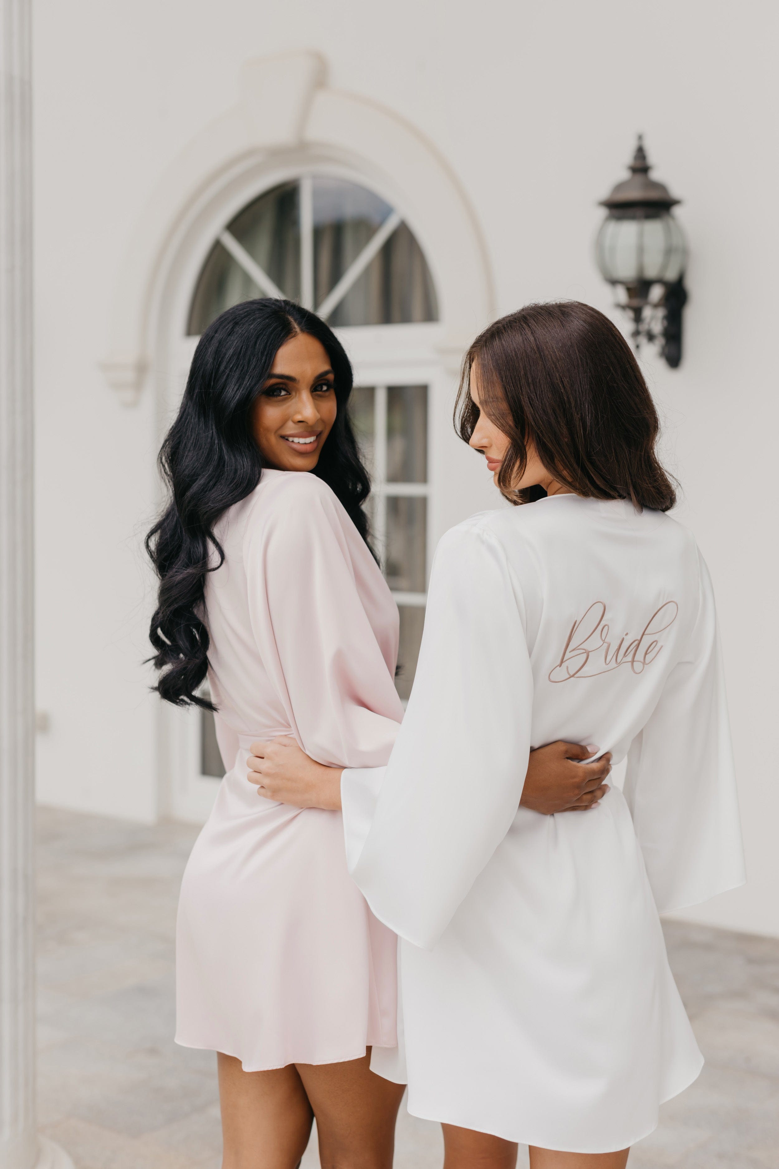 Bridal robes and sleepwear are packed in soft white satin gift bags with ribbon and a gift card, then delivered in postal sachets.
