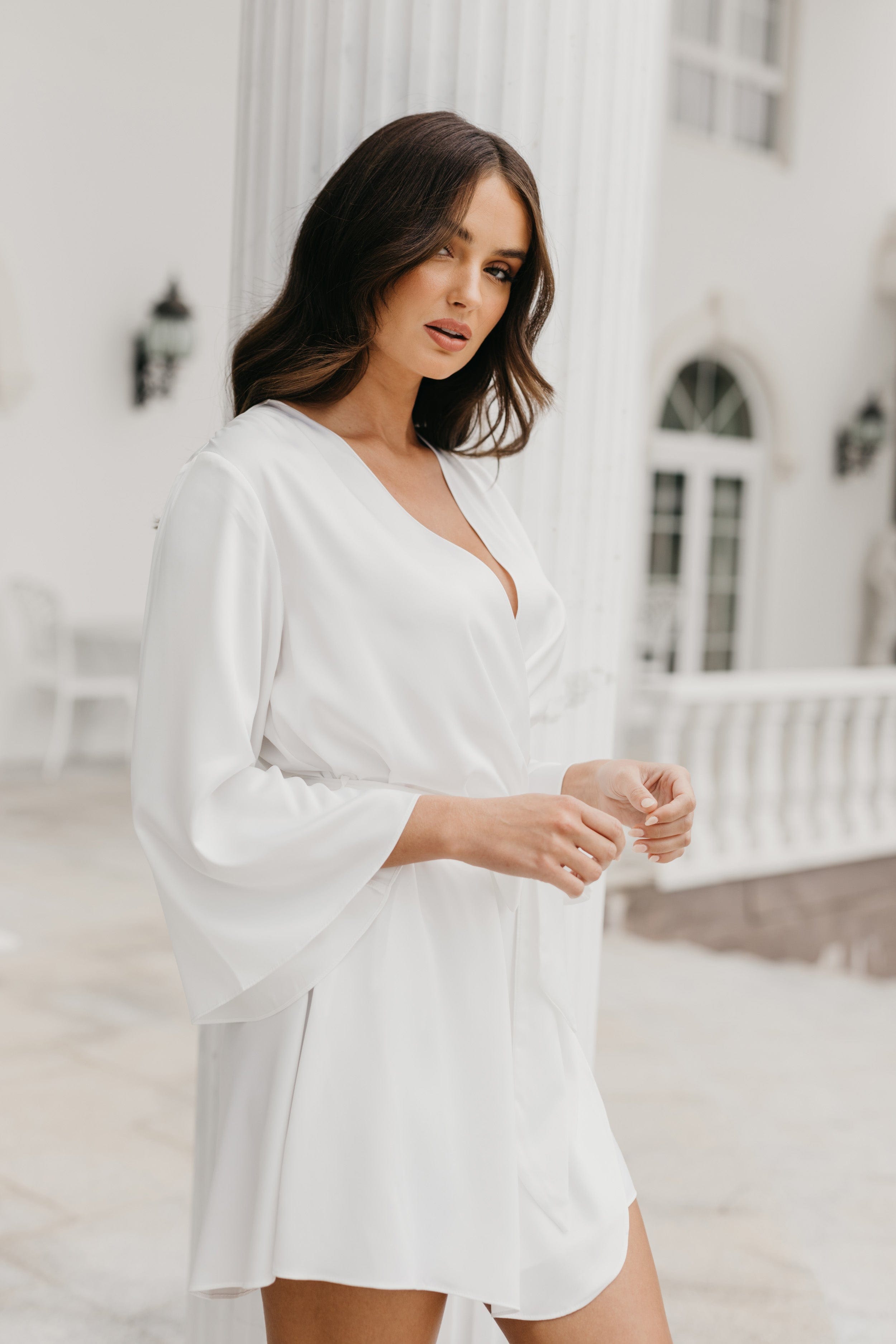 Embody elegance in our Willow Petal Hem Satin Trim Robe. Marrying a timeless silhouette with elegant angel sleeves and a floating petal hem.. the Willow joins classic and contemporary style in a perfect union.