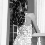 An opulent combination of both sheer fabrication and heavily hand beaded 3D floral lace detailing exclusively designed by Le Rose.