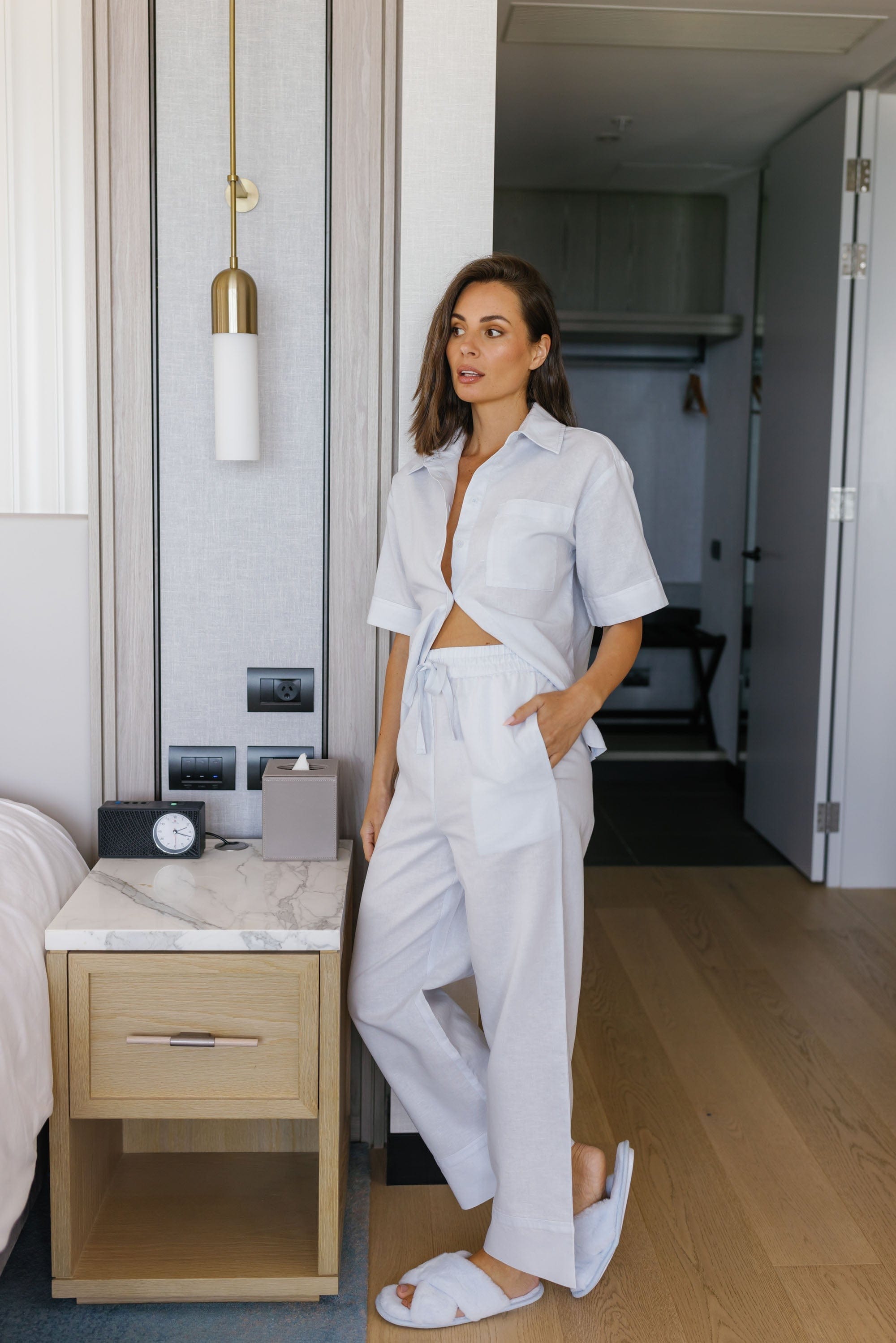 Available in stunning signature LR colours, the Portia linen sleep set is perfect for your pre-wedding rituals and makes a memorable gift for your bridal party.