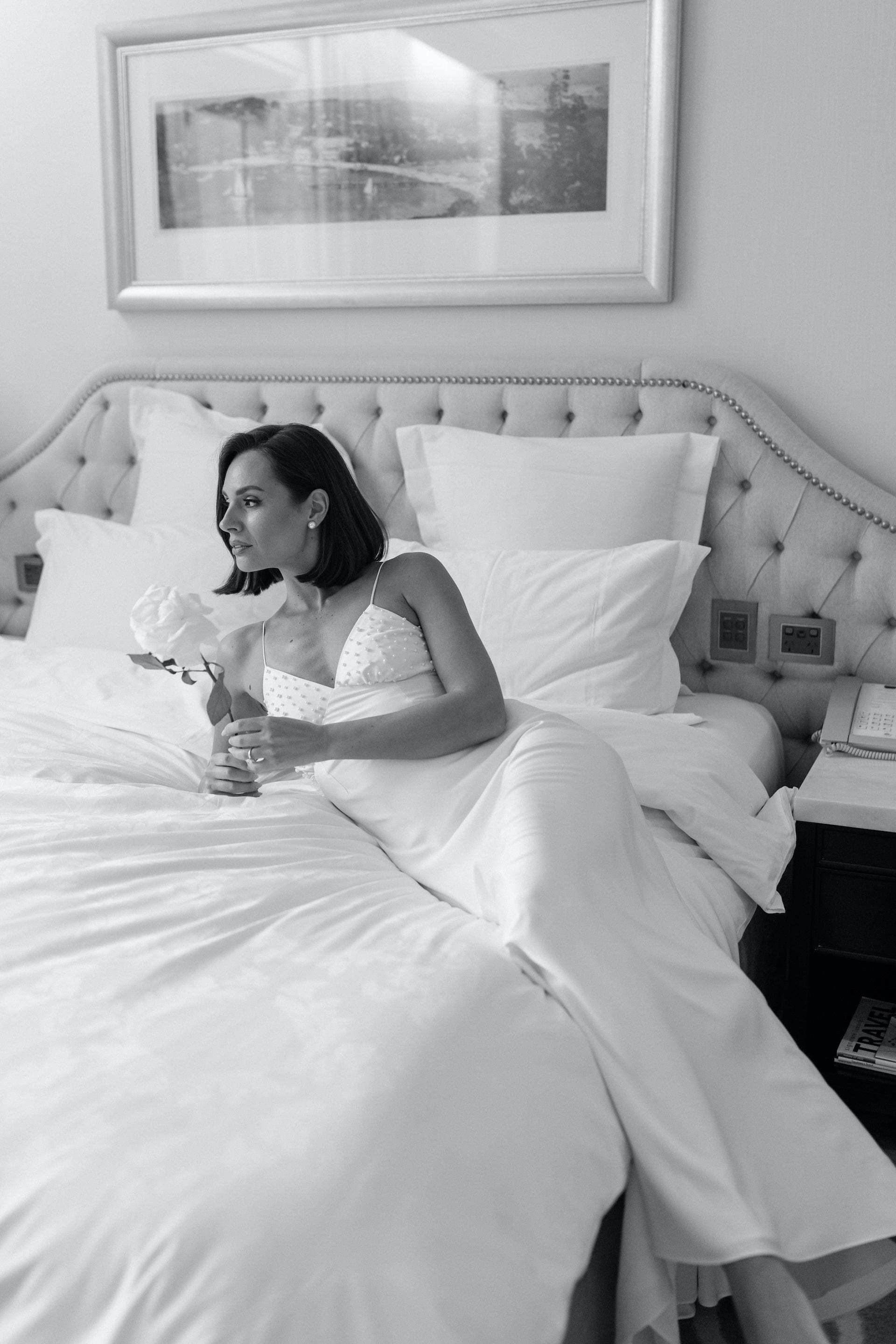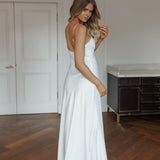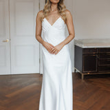 Beautifully constructed from our LR exclusive satin with soft lace detailing. It is bias cut and the front features scattered pearl beaded with a V shaped neckline and gathering at the bust. Adjustable straps at back allow for ease of taking off. Maxi length.