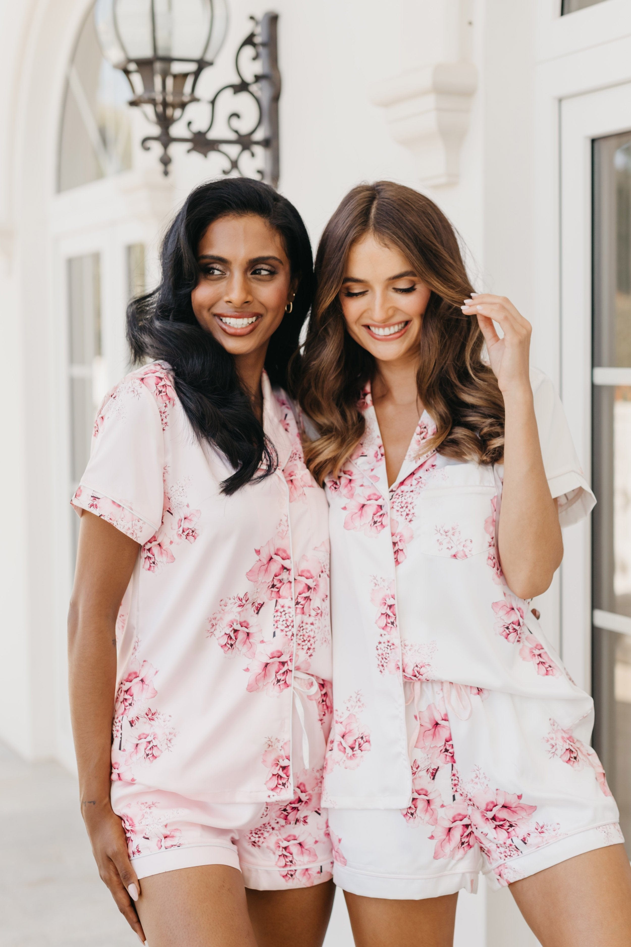 They bring joie de vivre to your days, dancing and Rosè to your nights. Celebrate your treasured ones with our Mileva Satin Printed PJ Set.