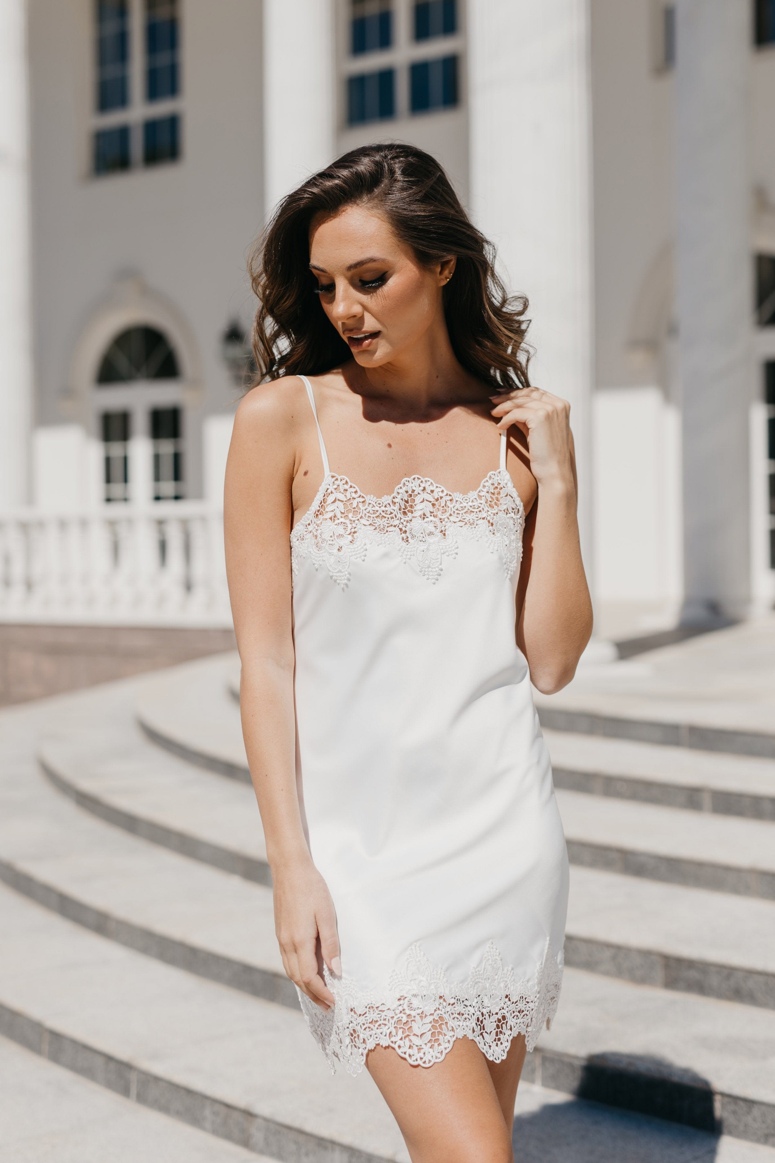 It's your once in a lifetime. It's your magic moment. Light up the room in our Hallie Lace Trim Slip.