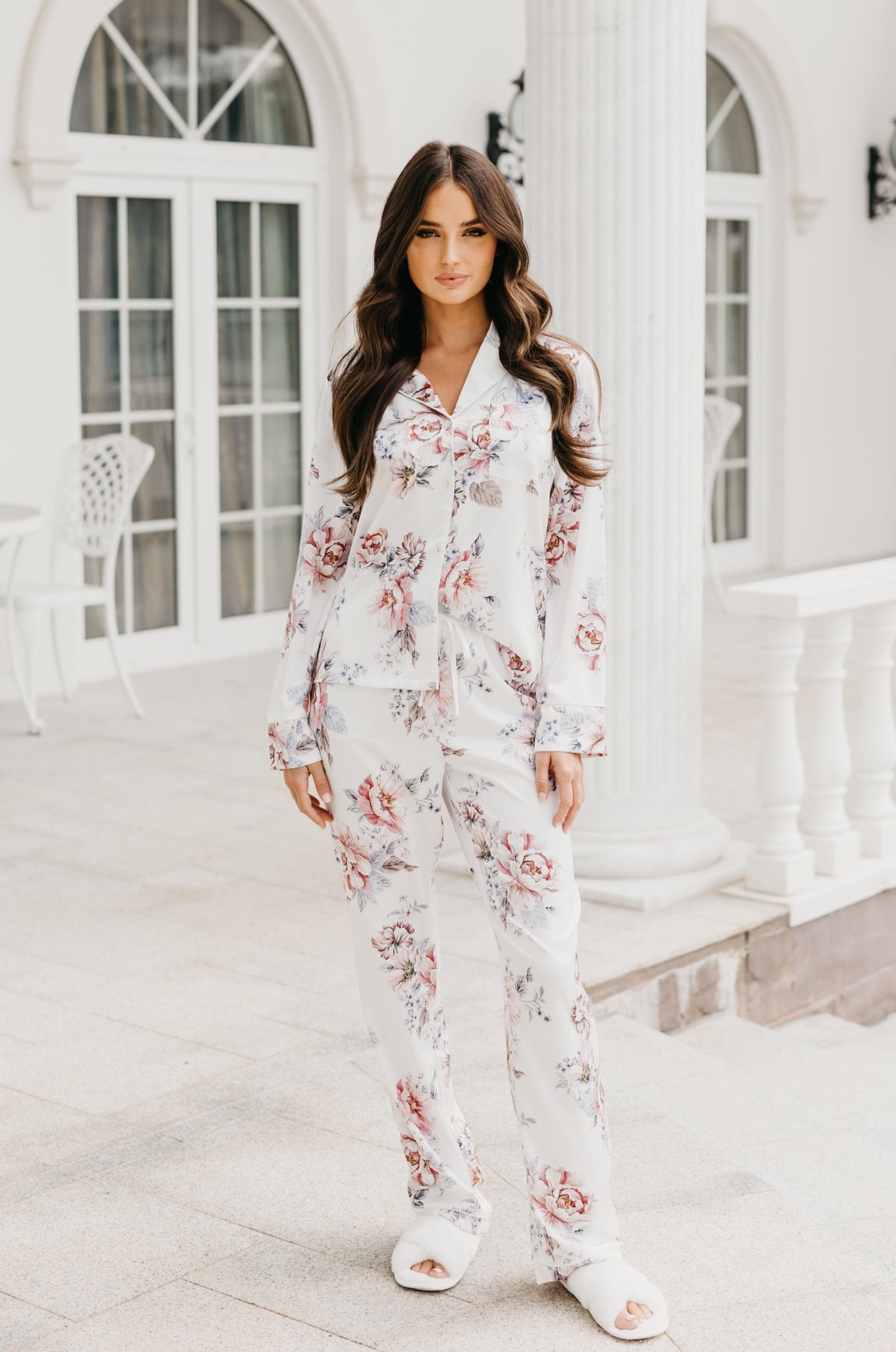 Try as you may to hide it... the world knows a woman in love. Let yourself bloom in Christina Veiled Rose printed long/long PJ set featuring an exclusive floral print designed in house at LeRose HQ. Available in 3 delightful colours, It's the time of the season for loving...