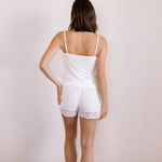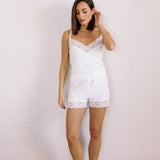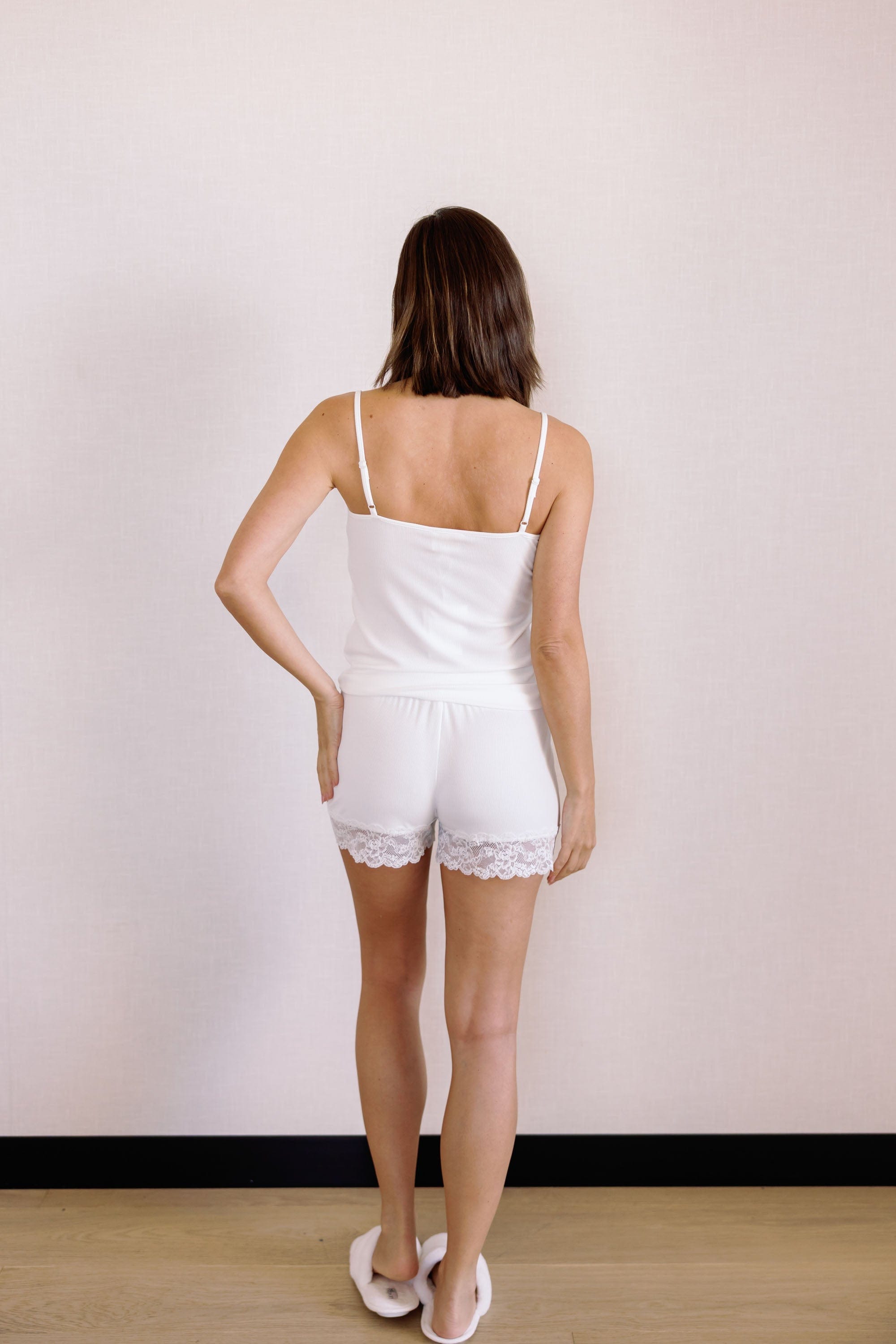 Our Lace Trim Modal Cami and Short Set in White is designed for those who value understated luxury. Crafted from ultra-soft modal with delicate lace accents, this set is breathable, silky, and perfect for relaxed evenings, gifting, or self-care.